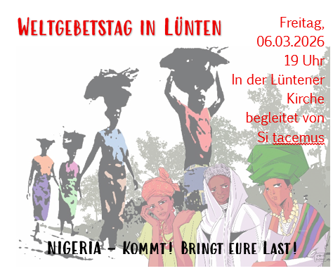 Mehr davonDas Vorbereitungsteam aus Vreden, Ammeloe und Lünten lädt herzlich zum Weltgebetstag nach Lünten ein. In…
