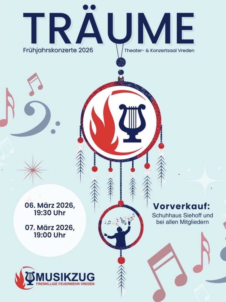 Der Musikzug der Freiwilligen Feuerwehr Vreden lädt in diesem Jahr wieder zu seinen traditionellen Frühjahrskonzerten…