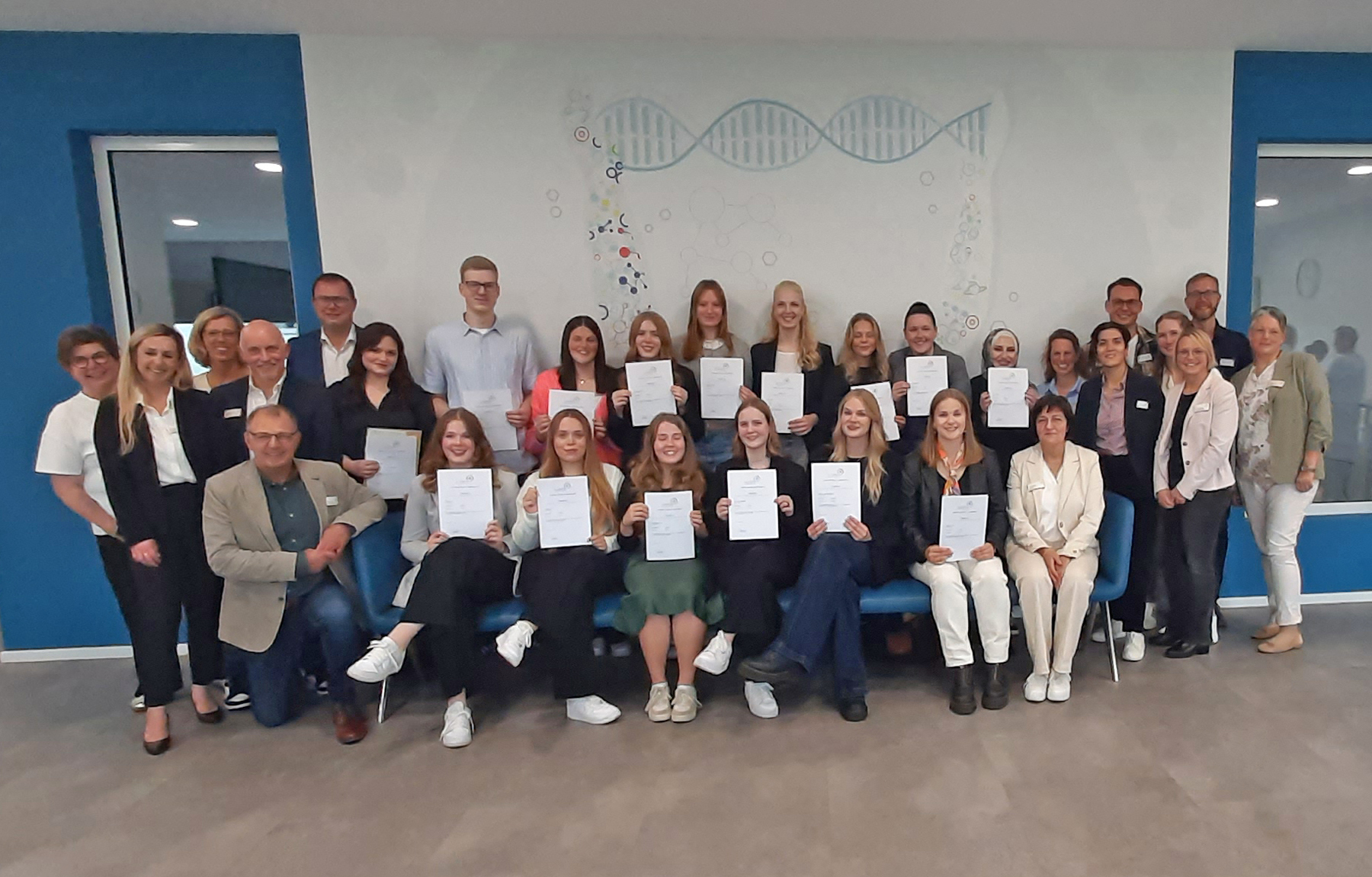 Besonders erfreut zeigte sich der Krankenhausdirektor auch darüber, dass 6 Absolventinnen und Absolventen dem Ahauser Krankenhaus auch über die nun abgeschlossene Ausbildung hinaus erhalten bleiben und hier ins Berufsleben starten. Das Klinikum Westmünsterland zählt mit seinen beiden Pflegeschulen in Ahaus und Bocholt in dem Bereich zu den größten Ausbildern im Westmünsterland.