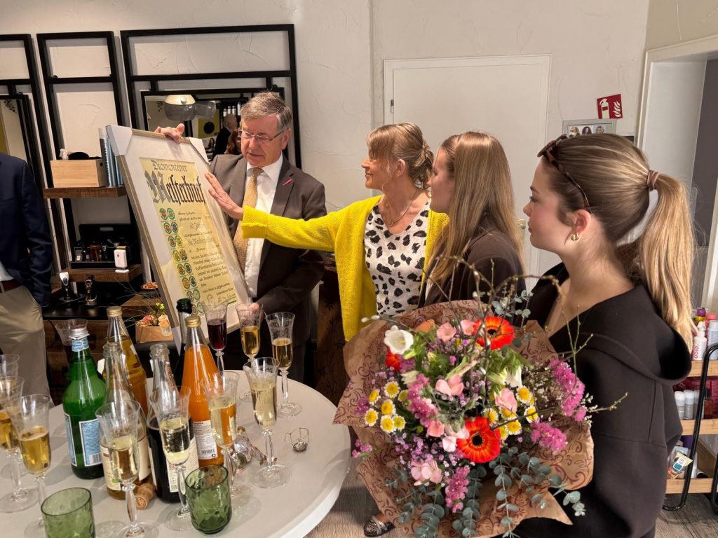 Besonders stolz zeigte sich Wilhelm Lütjann auch angesichts der sehr erfolgreichen Geschäftsübergabe an die Friseurmeisterin Monika Hauer, die das Geschäft seit Mai 2020 unter dem Namen Moni´s Scherenzauber weiterführt. „Dass wir Moni gefunden haben, war ein echter Glücksgriff. Sie ist mit demselben Herzblut bei der Sache wie wir und es ist einfach schön zu sehen, wie sie das Geschäft ständig weiterentwickelt“, freute sich Wilhelm Lütjann beim gemeinsamen Rundgang mit den Gästen durch den Salon.