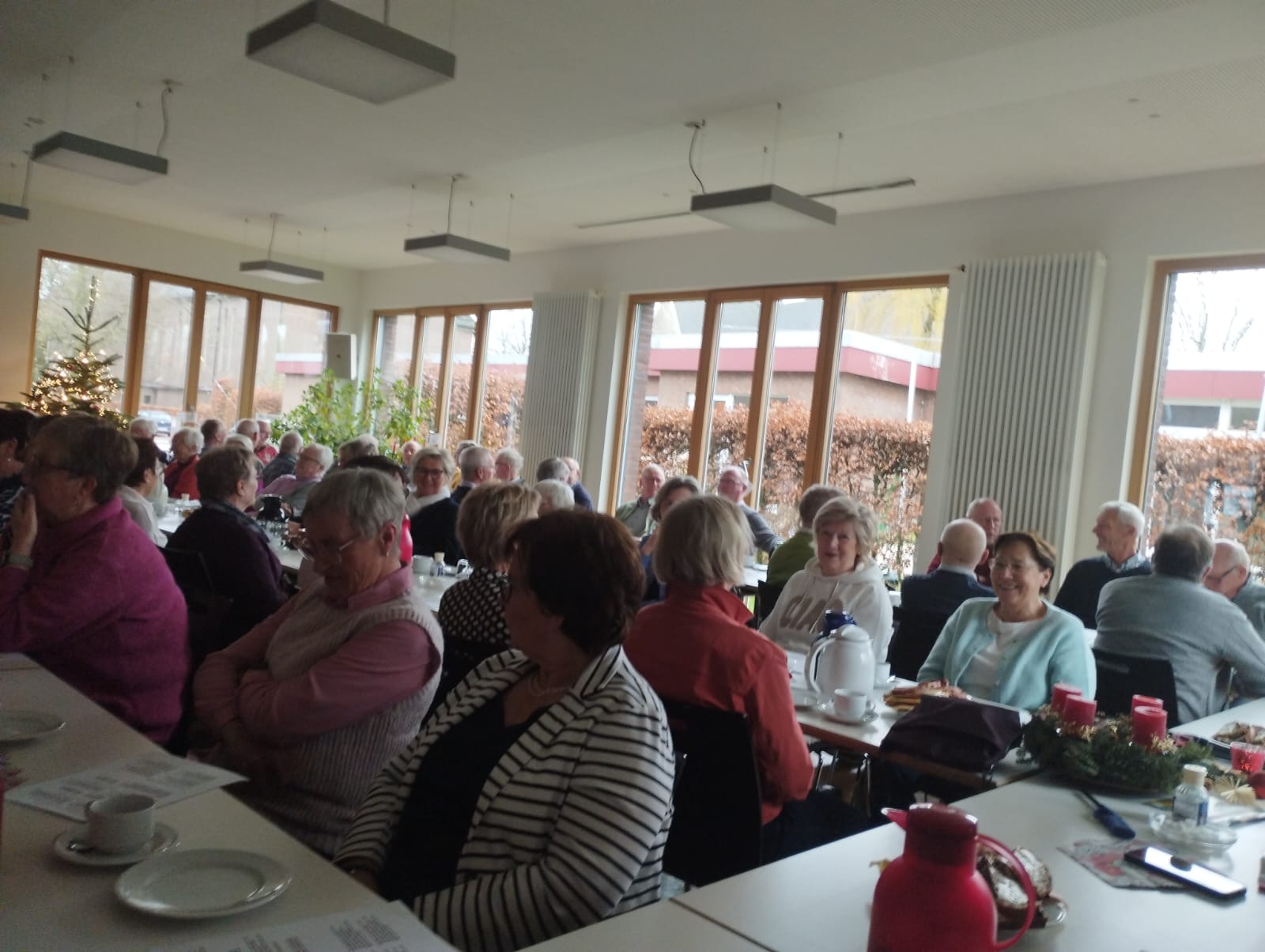 Die Seniorengemeinschaft Doemern traf sich am 10. Dezember 2025 mit 76 Mitgliedern im Pfarrheim St. Georg, um sich mit einer Adventsfeier auf die Vorweihnachtszeit einzustimmen. Nach der Begrüßung durch den ersten Vorsitzenden folgte zunächst ein gemütliches Kaffeetrinken. Danach wurden schöne Geschichten vorgetragen und Adventslieder gesungen – auch die Unterhaltung kam nicht zu kurz. Es war ein schöner besinnlicher Nachmittag für alle Anwesenden. Der Vorstand bedankt sich bei allen für die rege Teilnahme. Ein besonderer Dank gilt Agnes Gebing, die den Nachmittag musikalisch begleitet hat. Wir wünschen allen Mitgliedern und deren Familien ein frohes Weihnachtsfest und viel Glück und Gesundheit im neuen Jahr.