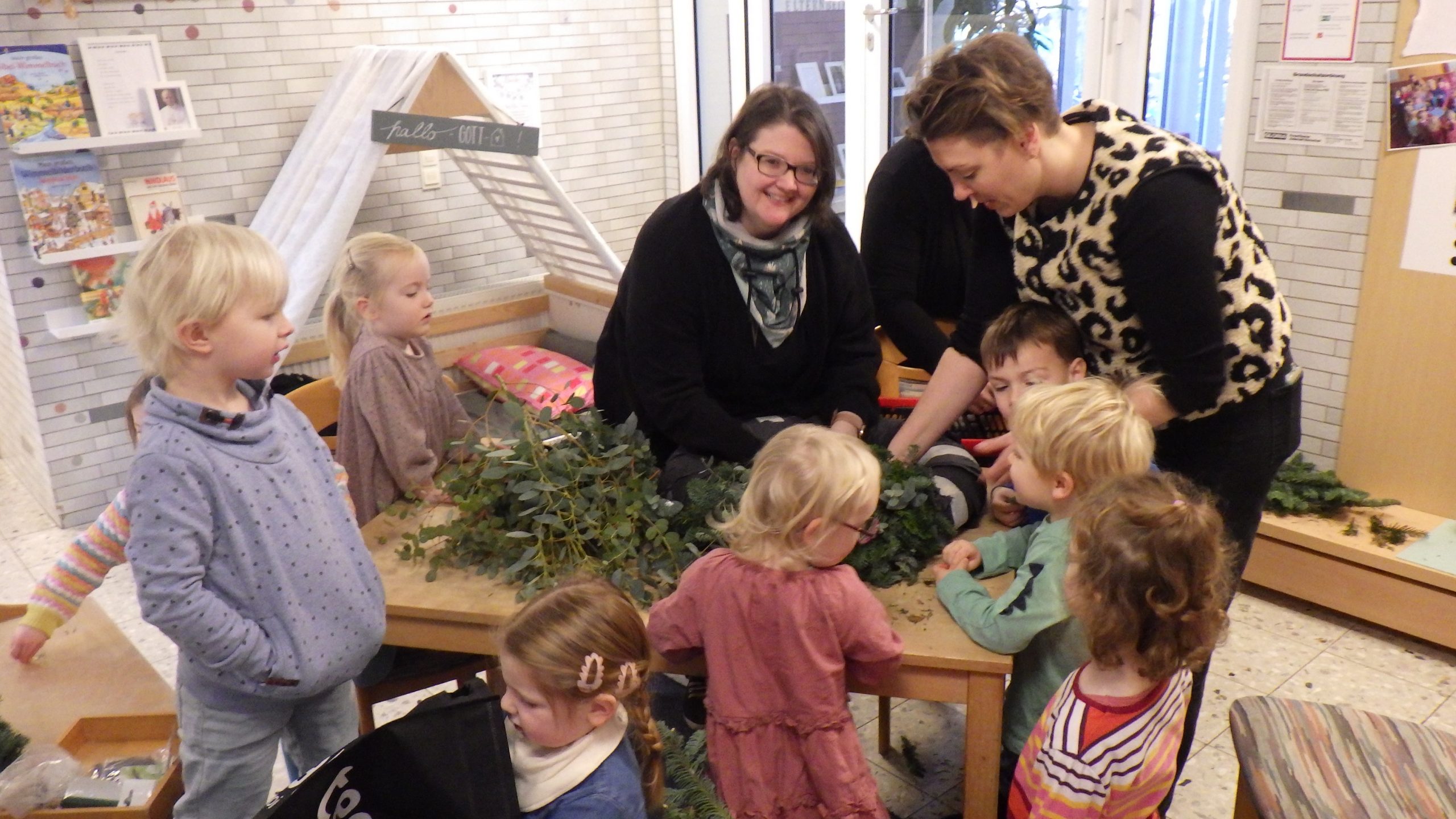 Es ist den Erzieherinnen des Kindergartens St.Bruno ein wichtiges Anliegen die Kinder in Prozesse einzubinden. Deshalb wird z.B. der Adventskranz nicht gekauft, sondern vor Ort gemeinsam gebunden und dekoriert. Ein herzliches Dankeschön an den Elternbeirat, der diese Aktion tatkräftig, mit viel Kreativität und Engagement unterstützt hat.