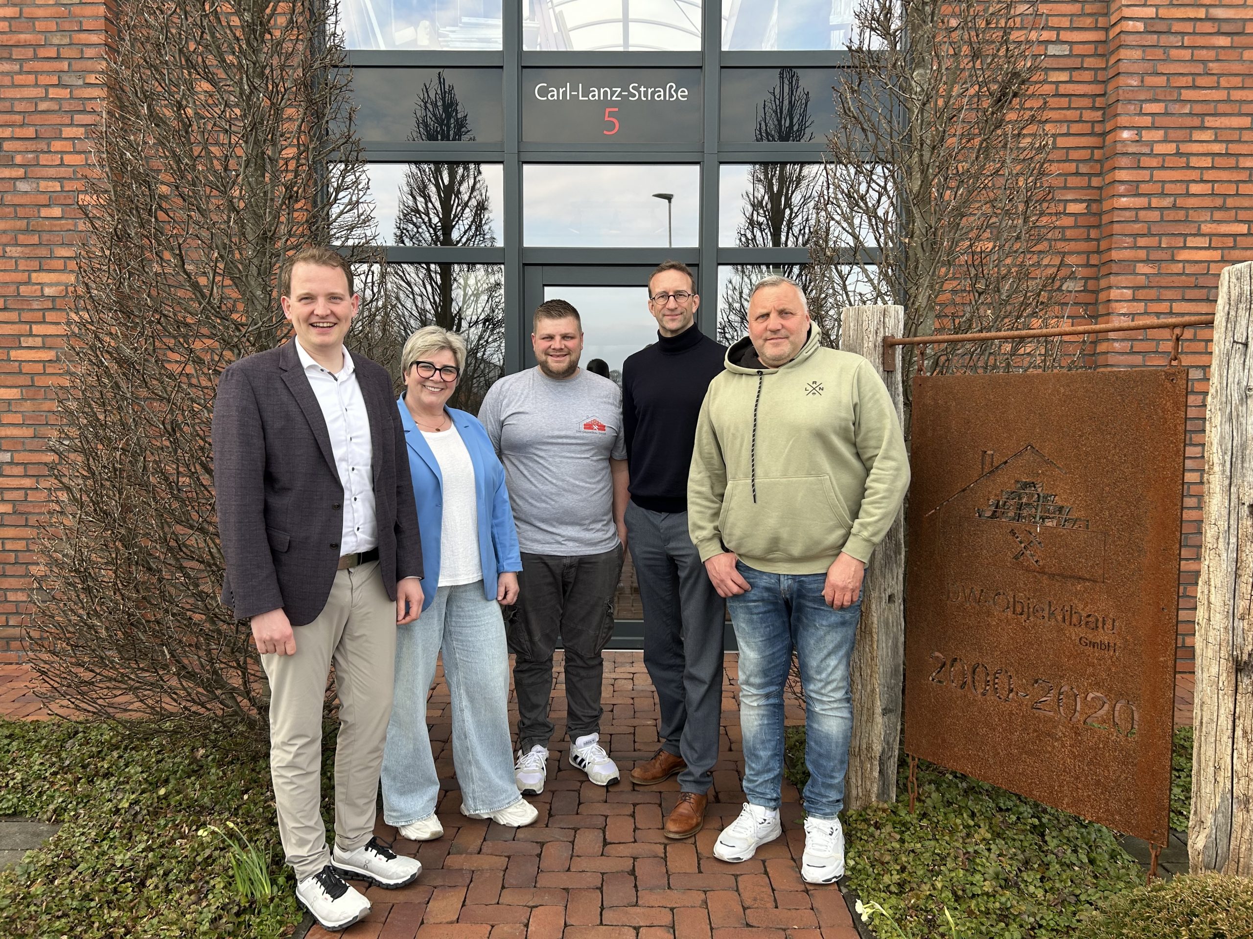Die Zusammenarbeit mit der Stadt Vreden wurde von den Unternehmensvertretern positiv hervorgehoben. „Viele Dinge lassen sich unkompliziert und schnell klären. Das erleichtert den Arbeitsalltag sehr“, betonte Maria Decker. Ein Beispiel sei unter anderem die mittlerweile gelöste Situation rund um die Straßenbeleuchtung am Standort. Bürgermeister Dr. Tom Tenostendarp zeigte sich beeindruckt vom Engagement des Familienunternehmens: „DW-Objektbau steht beispielhaft für die vielen mittelständischen Handwerksbetriebe in unserer Stadt, die mit Fachwissen, Einsatz und regionaler Verbundenheit wichtige Impulse für den Wohnungsbau in unserer Region setzen.“ Wirtschaftsförderer Michael Terhörst ergänzte: „Gerade familiengeführte Betriebe wie DW-Objektbau prägen unsere Wirtschaftsstruktur. Gleichzeitig wird hier deutlich, wie groß die Herausforderung ist, Nachwuchs für das Handwerk zu gewinnen. Praktika und frühe Einblicke in den Berufsalltag sind wichtige Bausteine, um junge Menschen für diese Berufe zu begeistern.“