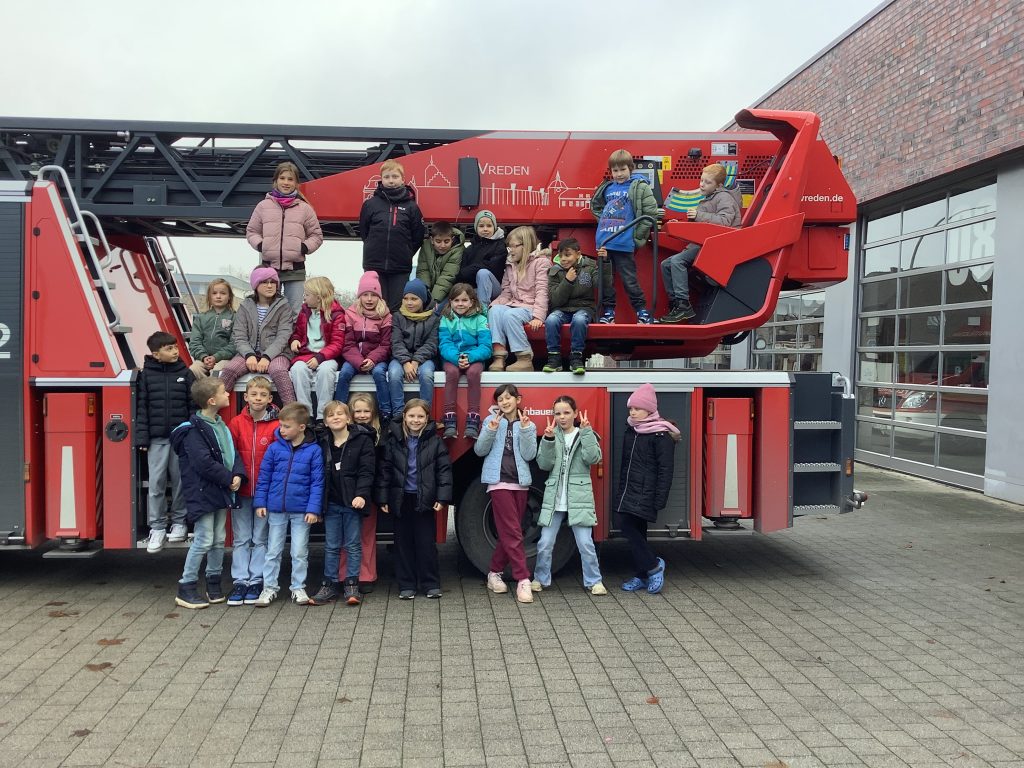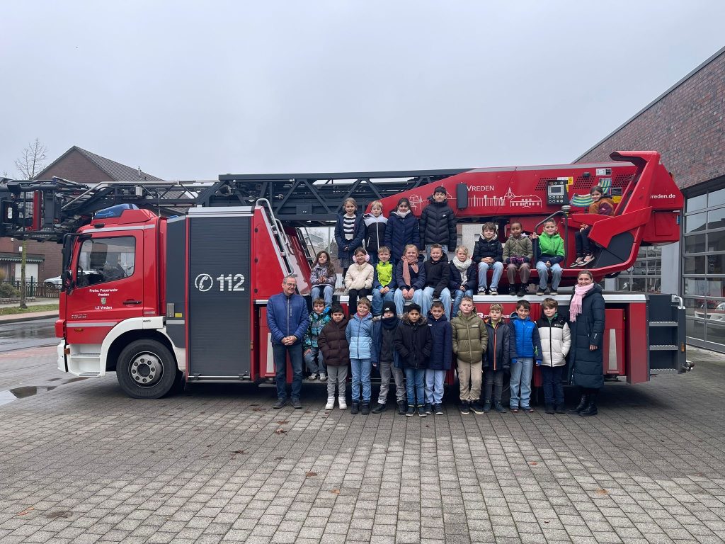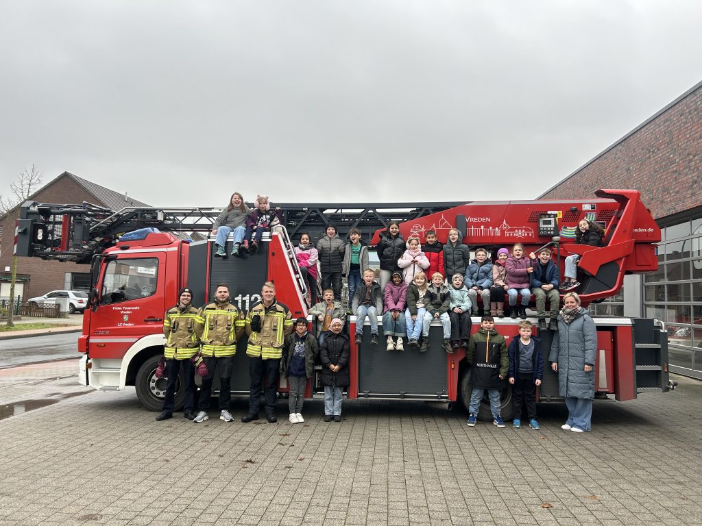 Die Klassen 3a, 3c und 3d der St. Norbert Schule erlebten einen außergewöhnlich spannenden Unterrichtstag. Im Rahmen des Sachunterricht Themas „Wir experimentieren mit Feuer und Flamme“ machten sich die Schülerinnen und Schüler gemeinsam auf den Weg zur örtlichen Feuerwache – ein Highlight, das theoretisches Wissen eindrucksvoll mit praktischen Erfahrungen verband. Vor Ort wurden die Kinder von Feuerwehrkräften empfangen, die ihnen einen umfassenden Einblick in ihren wichtigen Arbeitsalltag gaben. Sie erklärten nicht nur die vielfältigen Aufgaben der Feuerwehr, sondern zeigten auch, wie entscheidend Teamarbeit und gutes Training im Einsatz sind. Besonderes Interesse weckte die Einsatzkleidung: Die Kinder staunten über das Gewicht des Schutzanzugs und erfuhren, welche Funktionen Helm, Handschuhe und Atemschutzgerät erfüllen. Ein weiterer Programmpunkt war das richtige Absetzen eines Notrufs. Fasziniert erkundeten die Schülerinnen und Schüler außerdem verschiedene Einsatzfahrzeuge. Sie durften einen Blick in Löschfahrzeuge und weitere Spezialfahrzeuge werfen und lernten, welche Geräte und Werkzeuge darin verstaut sind und wofür sie im Ernstfall gebraucht werden. Auch das Thema Feuer selbst wurde anschaulich aufgegriffen: Wie entsteht es? Welche Materialien brennen? Und unter welchen Umständen wird ein kleiner Funke zur Gefahr? Die Kinder nutzten die Gelegenheit, viele neugierige Fragen zu stellen. Der Besuch war für die drei Klassen ein lehrreicher und zugleich aufregender Vormittag, der das Unterrichtsthema lebendig machte und den Kindern wichtige Sicherheitstipps für den Alltag mitgab. Zum Schluss möchten sich die Kinder und Lehrkräfte der drei Klassen ganz herzlich bei der Feuerwehr Vreden für die Zeit, das Engagement und die geduldigen Erklärungen, die diesen Schultag zu etwas ganz Besonderem gemacht haben, bedanken.