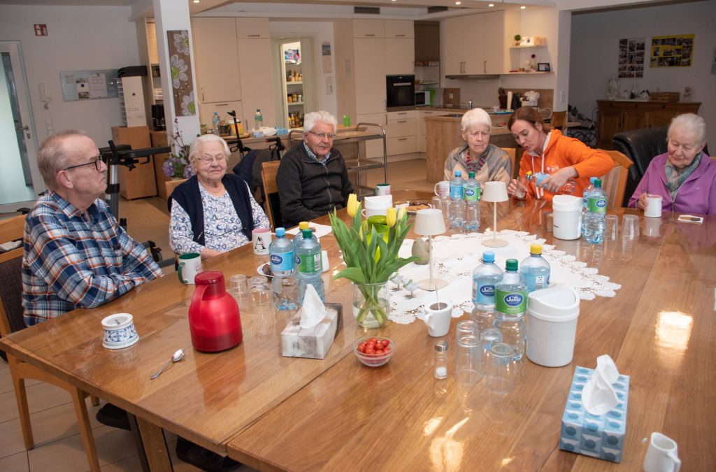 Das Herzstück der Wohngemeinschaft ist das Miteinander. „Letztlich entscheiden die Bewohner selbst“, sagt Andrea Welper. Wer einziehen möchte, lernt die Gemeinschaft zunächst bei einem gemeinsamen Kaffeetrinken kennen. Erst danach fällt die Entscheidung. „Die Bewohner haben hier wirklich Mitspracherecht. Das ist ein großer Unterschied zum klassischen Heim, wo man ein freies Zimmer bekommt und sich anpassen muss.“ Und dieses Mitbestimmen zeigt sich im Alltag. Es wird frisch gekocht, gemeinsam geplant, diskutiert und entschieden. Was kommt auf den Tisch? Wird eine neue Waschmaschine angeschafft? All das besprechen die Bewohner miteinander. Wer möchte, hilft freiwillig mit – beim Kartoffelschälen, Gemüseputzen oder Tischdecken. „Das gibt vielen das Gefühl von früher, von Zuhause“, erzählt Welper. „Und Beschäftigung tut gut.“
