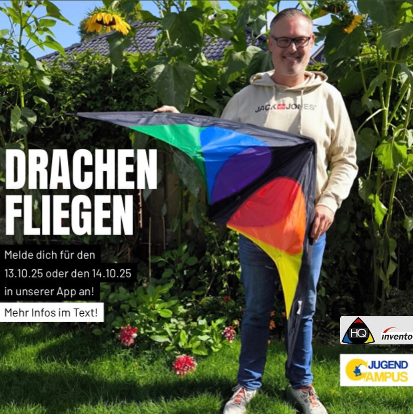 Ich bin Dominik Nettels, leidenschaftlicher Drachenflieger und möchte euch gemeinsam mit dem Jugendwerk Vreden in die spannende Welt der Lenkdrachen mitnehmen. Gemeinsam erleben wir einen Tag voller Action: