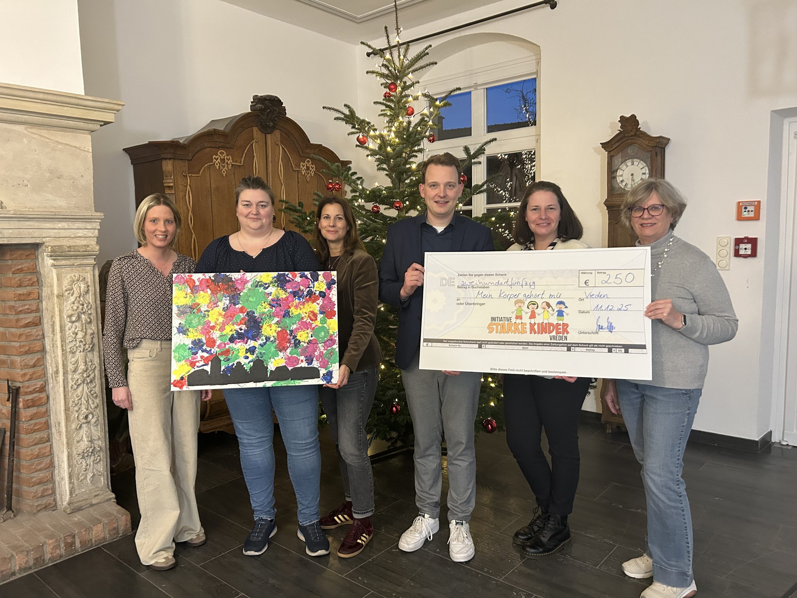 Das bewährte Präventionsprojekt „Mein Körper gehört mir“ kehrt 2026 an alle Vredener Grundschulen zurück: Das Theaterprojekt richtet sich an die Schülerinnen und Schüler der 3. und 4. Klassen und setzt ein wichtiges Zeichen für den Schutz von Kindern vor sexuellem Missbrauch. Ziel ist es, Kinder frühzeitig, verantwortungsvoll und kindgerecht zu stärken. Das Projekt wird seit 2004 kontinuierlich an allen Vredener Grundschulen durchgeführt und hat sich als fester Bestandteil der Präventionsarbeit etabliert. Die Kinder erleben das Theaterstück aktiv mit und werden altersgerecht einbezogen. In anschaulichen Szenen lernen sie, eigene Grenzen wahrzunehmen, ihrem Bauchgefühl zu vertrauen und sich in schwierigen Situationen Hilfe zu holen. Der Fokus liegt dabei auf einer positiven, alltagstauglichen Vermittlung, die Kinder stärkt und schützt. Damit dieses wichtige Angebot auch künftig umgesetzt werden kann, ist die Initiative Starke Kinder Vreden auf Spenden angewiesen. Die gesamte Finanzierung des Projekts erfolgt ausschließlich über Spenden und ehrenamtliches Engagement. Jeder Beitrag fließt direkt in die Präventionsarbeit an den Vredener Grundschulen und kommt den Kindern unmittelbar zugute. Ein klares Zeichen der Unterstützung setzt Bürgermeister Dr. Tom Tenostendarp. Er ersteigerte ein Actionpainting-Bild des Vredener Bündnisses für Familie in Vreden e.V. für 250,00 Euro und entschied sich, den Erlös gezielt für das Projekt „Mein Körper gehört mir“ einzusetzen. Die Elterninitiative Starke Kinder Vreden bedankt sich herzlich für diese Unterstützung und ruft gleichzeitig Vredenerinnen und Vredener, Unternehmen und Institutionen dazu auf, das Projekt ebenfalls zu fördern. Nur durch gemeinsames Engagement kann die Präventionsarbeit langfristig gesichert werden. Spendenkonto: Starke Kinder Vreden, Sparkasse Westmünsterland, IBAN: DE87 4015 4530 0038 2425 82, BIC: WELADE3WXXX. Ansprechpartnerinnen: Stefanie Hilbing, Bündnis für Familie in Vreden e.V., E-Mail: s.hilbing@gmx.de, Christine Ameling, Gleichstellungsbeauftragte der Stadt Vreden, E-Mail: gleichstellung@vreden.de, Tel. 303-207