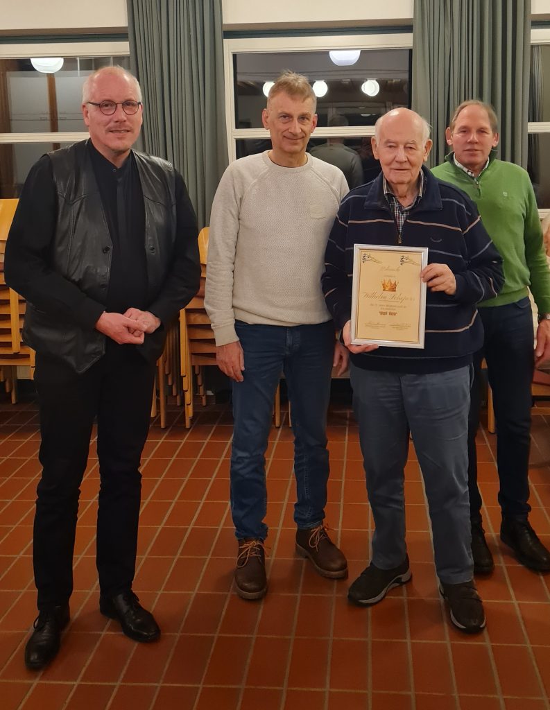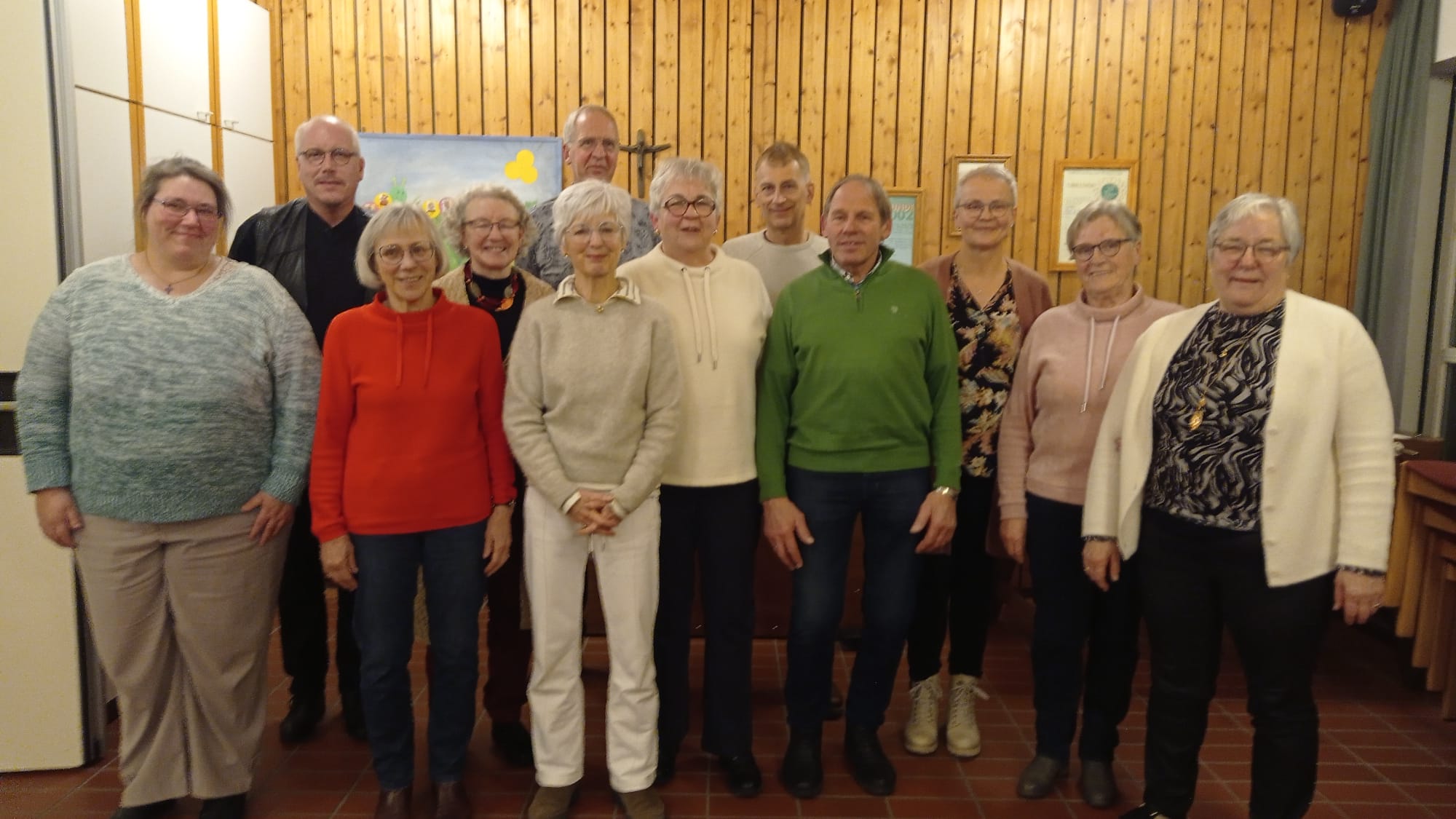 Am 12. Januar 2026 fand die Jahreshauptversammlung der Chorgemeinschaft St. Bruno/ St. Marien im Pfarrheim in Lünten statt. Zu Beginn der Veranstaltung begrüßte der Vorsitzende Hermann-Josef Höink den Präses Pfarrer Theberath, den Chorleiter Michael Röttger und die anwesenden Chormitglieder und bedankte sich bei allen für ihr Engagement. Zum Gedenken an die verstorbenen Sängerinnen und Sänger des Chores verlas er einen kurzen Text als Zeichen des Respektes und der Erinnerung. Anschließend wurden die Aktivitäten und gemeinsame Erlebnisse des Chores wieder lebendig, als die Schriftführerin den Jahresrückblick 2025 vortrug. Nach Beendigung des Vortrages kündigte der Vorsitzende eine ganz besondere Ehrung an: Willi Schepers konnte auf 75 Jahre Chormitgliedschaft zurückblicken und gleichzeitig im Dezember seinen 90. Geburtstag feiern! Zu diesem außergewöhnlichen Jubiläum gratulierten ihm Präses Pfarrer Theberath, Chorleiter Michael Röttger, Vorsitzender Hermann-Josef Höink und der ganze Chor mit kräftigem Applaus. Sichtlich erfreut nahm Willi die Glückwünsche samt Urkunde und Präsentkorb entgegen. Die darauffolgenden Wahlen ergaben, dass Hermann-Josef Höink weitere vier Jahre Vorsitzender der Chorgemeinschaft bleibt. Auch Hedwig Hösing bleibt dem Vorstand erhalten, während das Amt des Kassierers neu besetzt wurde: Maria Esseling wurde von Ursula Niedernüvemann abgelöst, wobei Toke Zwinkels sie in Zukunft vertritt. Die Vorstellung des Chorfahrplanes 2026 führte zu einem regen Austausch der Anwesenden und wird nach Fertigstellung freigegeben. Wer Lust hat, mal einfach nur ,,zu schnuppern“ ist herzlich eingeladen! Wir proben montags um 19.30 Uhr in geraden Monaten in Lünten , Pfarrheim St. Bruno, und in ungeraden Monaten in Vreden, Pfarrheim St. Marien. Kontakt: Hermann-Josef Höink Tel. 0160 97792300.