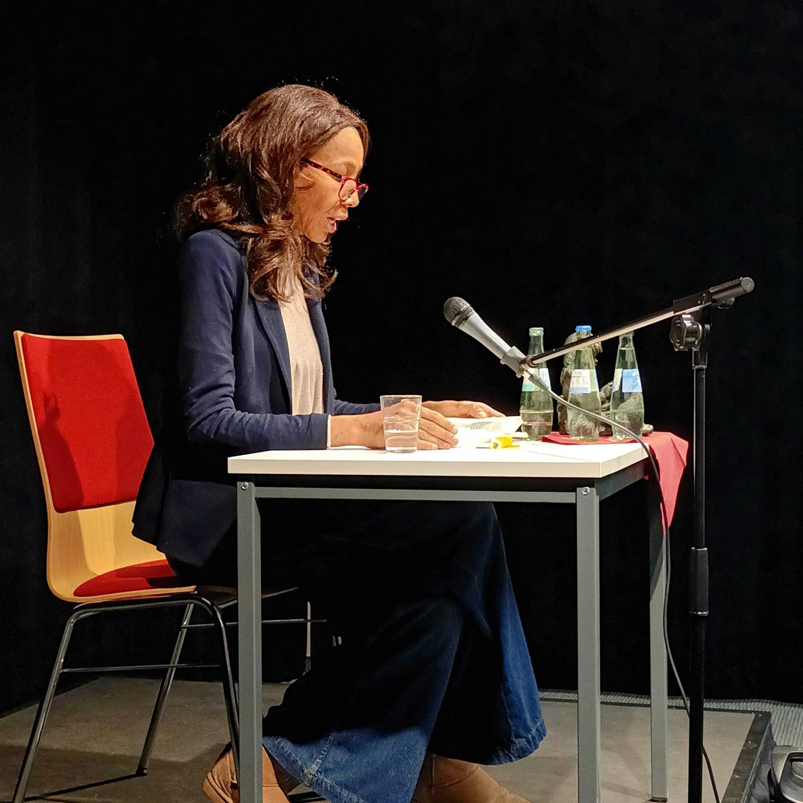 Mit Leseproben aus den verschiedenen Kapiteln des Buches gelang es Jennifer Teege innerhalb kürzester Zeit alle Zuhörer*innen in ihren Bann zu ziehen. Ausgehend vom Zufallsfund eines Buches über ihre Mutter präsentierte die Autorin schonungslos offen alle Facetten ihrer zutiefst bedrückenden Familiengeschichte. Nach dem gut einstündigen Leseteil herrschte ergriffene Stille, haben die Zuhörer doch eine Frau kennen gelernt, die trotz aller Belastungen selbstbewusst und authentisch zu ihrer Familiengeschichte steht.