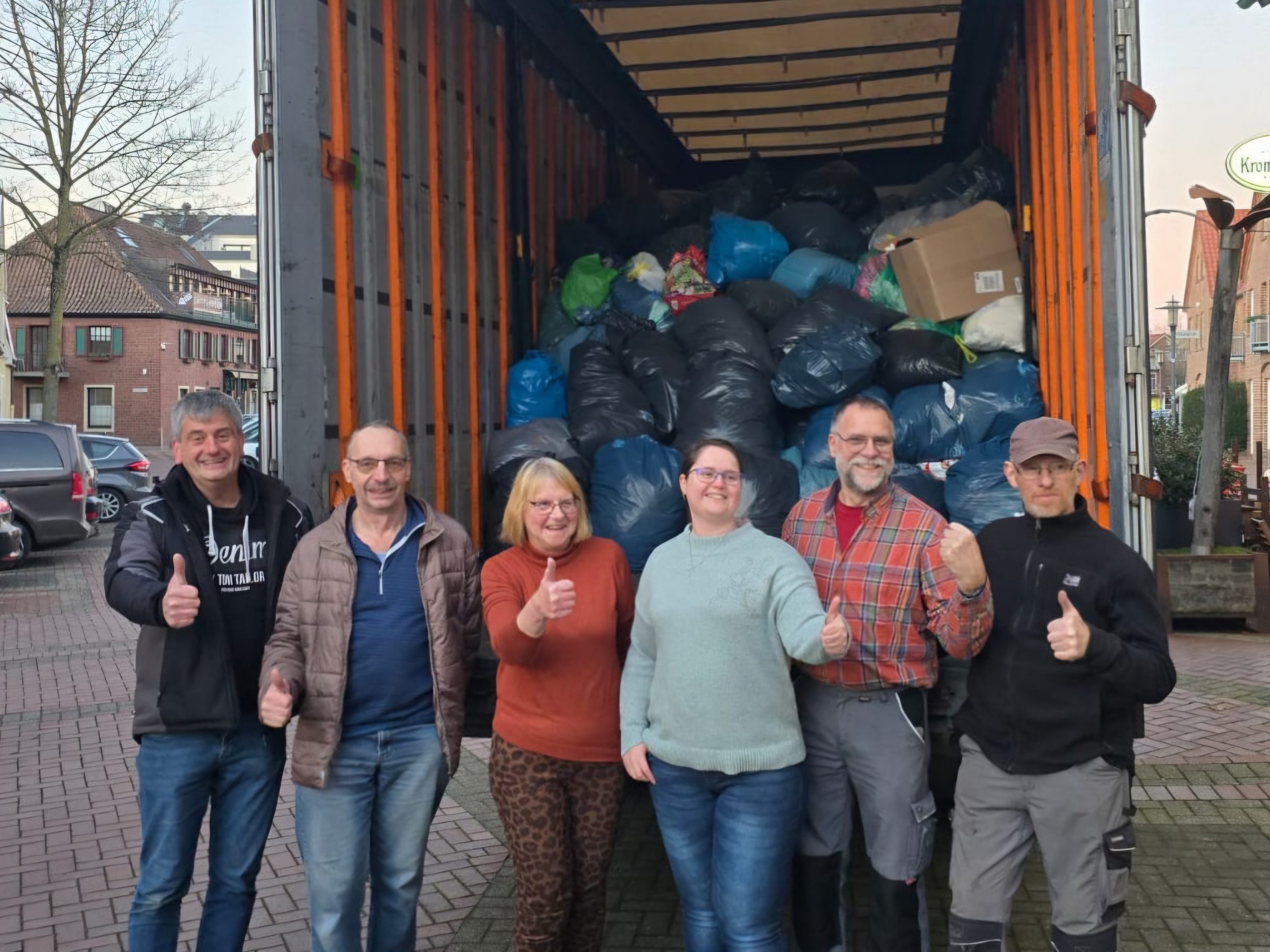 Das Vredener KAB-Team konnte auch in diesem Jahr wieder einen großen Erfolg bei ihrer Kleidersammlung verbuchen. Knapp 6 Tonnen Kleider, Betten und Wäsche sind in der Begegnungsstätte zusammengekommen und am Freitagnachmittag durch engagierte Helfer auf den LKW verladen worden. Dieses Ergebnis konnte nur durch die große Spendenbereitschaft der Vredener Bevölkerung erzielt werden, dafür sagt das Team der KAB herzlichen Dank. Gleichzeitig gilt der Dank auch allen ehrenamtlichen Helfern, die ihre Zeit und Muskelkraft zur Verfügung gestellt haben. Denn nur mit vielen Anpackenden konnten die Kartons und Säcke gesammelt und verladen werden.