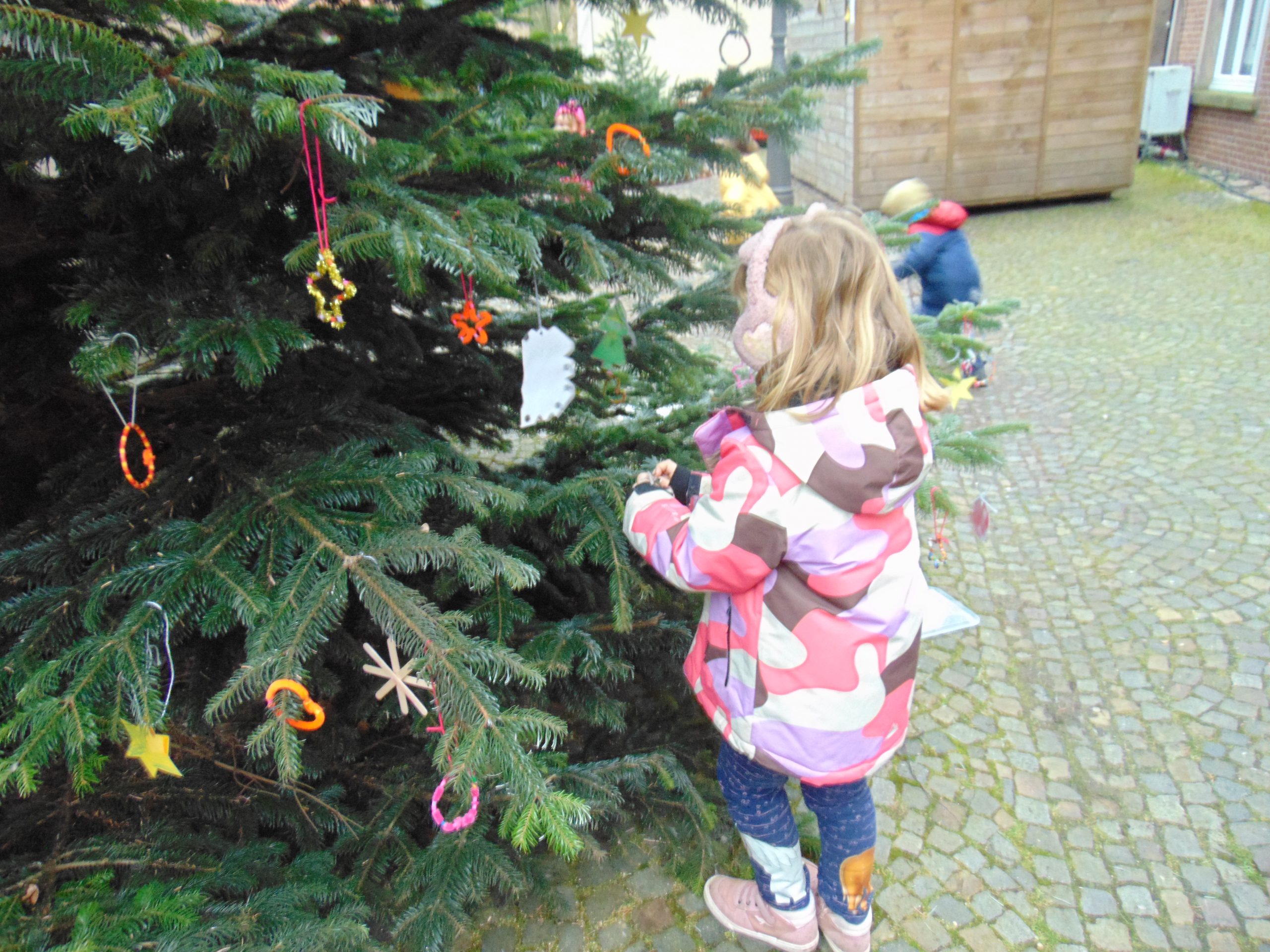 Die Kinder vom Kindergarten St. Antonius haben in den vergangenen Tagen im Atelier für den Ammeloer Weihnachtsmarkt Baumschmuck gebastelt. Dafür sind aus Bügelperlen und Pfeifenputzern tolle Anhänger entstanden. Am vergangenen Mittwoch sind dann einige Kinder zum Ammeloer Weihnachtsbaum gelaufen, um dort selbst den Tannenbaumschmuck aufzuhängen. In diesem Zug konnten die Kinder auch die große Krippe vor der Kirche bewundern.