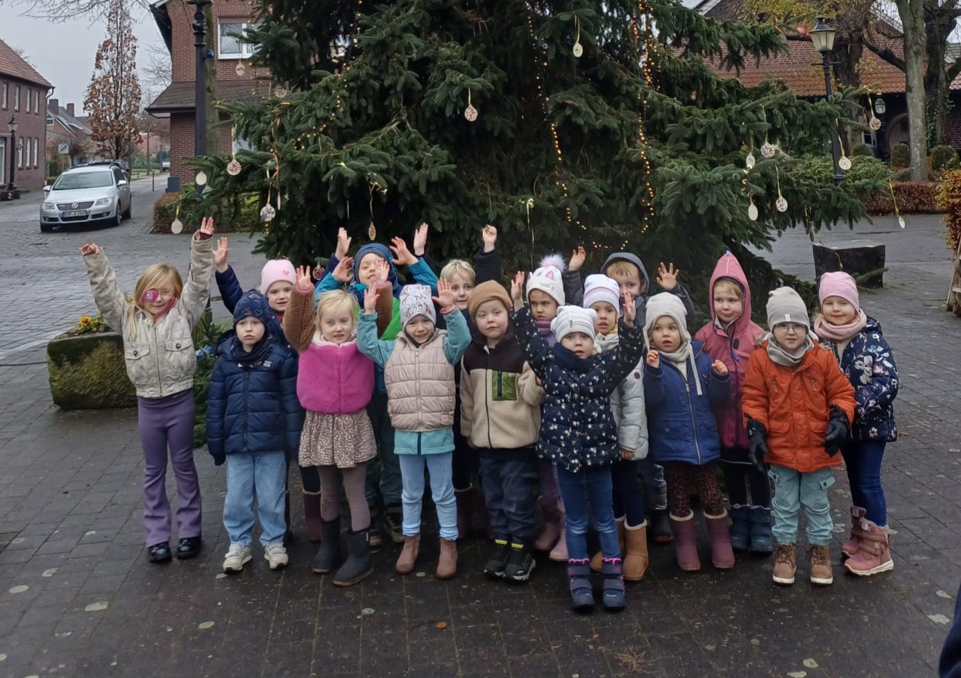 Kindergartenkinder haben den Lüntener Weihnachtsbaum geschmückt