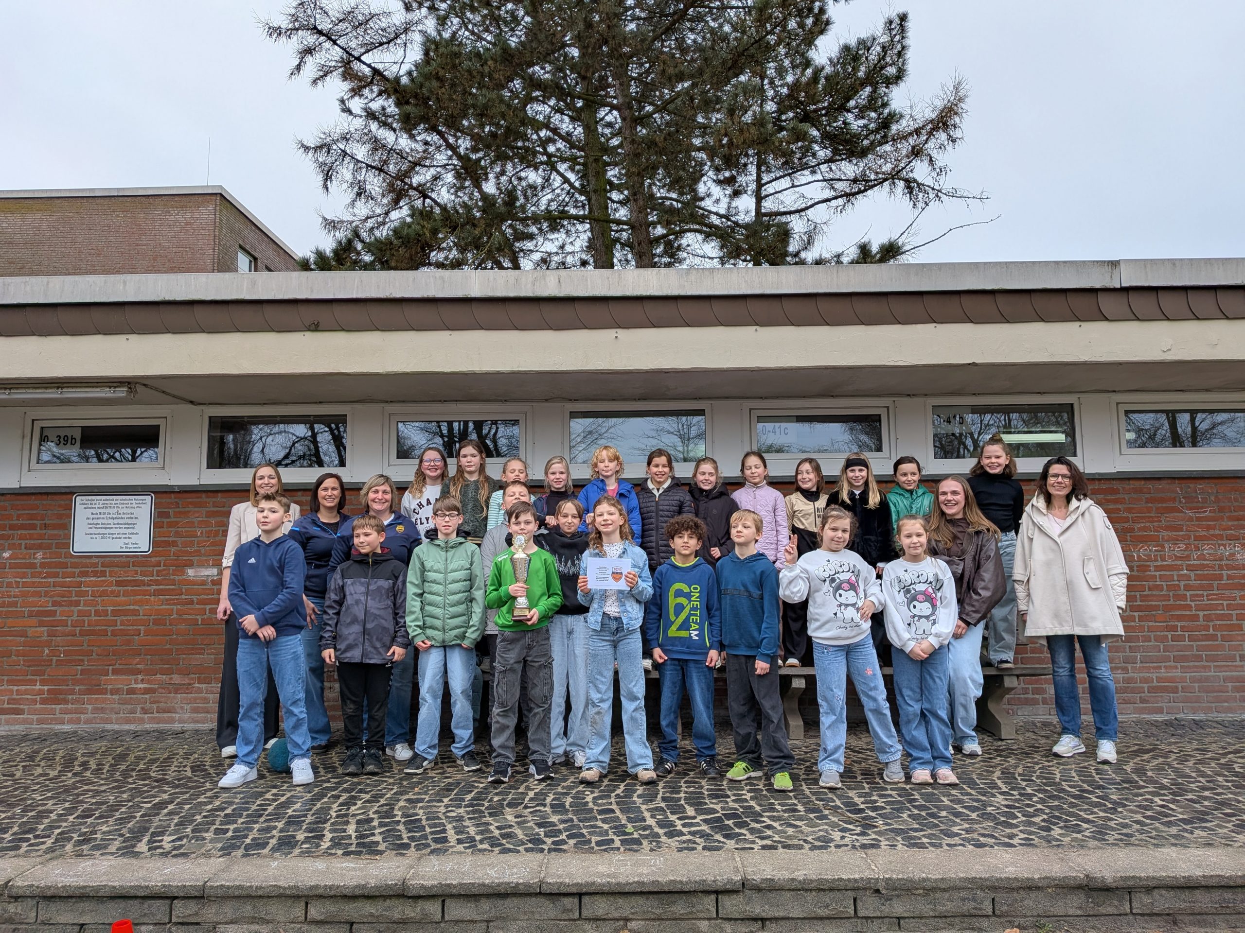 In diesem Jahr gab es dabei eine Besonderheit: Die Klasse 4c der St. Marien-Schule sicherte sich den Pokal zum vierten Mal in Folge. Bereits in ihrem ersten Schuljahr gewann die heutige 4c die Trophäe und verteidigte diesen Titel seitdem in jedem Jahr ihrer Grundschulzeit. Da es sich eigentlich um einen Wanderpokal handelt, dieser aber nun seit vier Jahren ununterbrochen in derselben Klasse verblieb, wurde entschieden, dass die Kinder die Trophäe dauerhaft behalten dürfen.