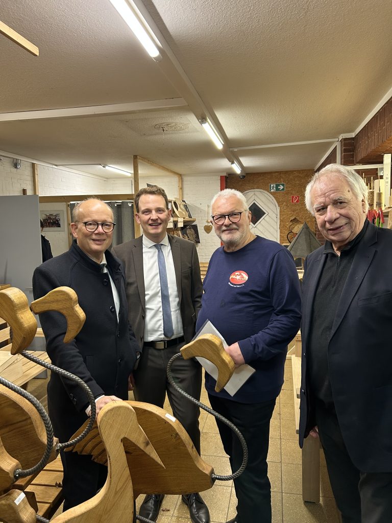 Die Stadt Vreden begrüßte am Montag das Präsidium des Landtags Nordrhein-Westfalen im Rahmen der Reihe „Landtag lokal – Demokratie vor Ort“. Landtagspräsident André Kuper sowie Vizepräsident Christof Rasche informierten sich über die vielfältigen Aktivitäten und Initiativen in der Stadt und zeigten sich dabei besonders beeindruckt vom starken ehrenamtlichen Engagement der Vredenerinnen und Vredener. Bürgermeister Dr. Tom Tenostendarp hieß das Präsidium im Rathaus willkommen. Er und der Erste Beigeordnete Fadi Rajab begleiteten das Tagesprogramms. „Ich freue mich sehr, dass der Landtag heute bei uns in Vreden zu Gast ist. Es ist schön zu sehen, wie viel Interesse an unserer Stadt besteht und wie engagiert die Menschen hier vor Ort ihre Projekte vorstellen. Der direkte Austausch tut beiden Seiten gut“, freute sich Bürgermeister Dr. Tom Tenostendarp. Der Besuch begann mit Gesprächen im Gymnasium Georgianum und an der St. Marien-Schule. Vizepräsident Christof Rasche stand den Schülerinnen und Schülern Rede und Antwort zu politischen Fragen, demokratischen Prozessen und dem Arbeitsalltag im Landtag. Dabei ging es unter anderem um Themen wie KI, Führerscheinkosten und Schulpolitik. Im Rathaus informierten die Beauftragten des Petitionsausschusses über das Petitionsverfahren und beantworteten Fragen der Vredenerinnen und Vredener. Das Angebot bot Gelegenheit für direkte Gespräche und Hinweise. Am Nachmittag besuchte das Präsidium des Landtags NRW verschiedene Einrichtungen und Vereine, darunter das Jugendwerk Vreden, das Heimathaus Noldes, die Initiative „Mit Hand und Herz“, die Pfadfinder Vreden, den Generationentreff sowie die Bürgerstiftung Vreden. Die Vielfalt und Qualität des ehrenamtlichen Engagements wurde beim Rundgang besonders deutlich und beeindruckte auch Landtagspräsident André Kuper. Den Abschluss des Besuchs bildete ein Empfang im kult Westmünsterland, zu dem einige engagierte Vredenerinnen und Vredener eingeladen wurden. Bei leckerem Essen, kühlen Getränken und stimmungsvoller Live-Musik kam es zu einem regen Austausch. Das Präsidium des Landtags trug sich zudem in das Goldene Buch der Stadt Vreden ein. „Der Tag hat gezeigt, wie viel positive Energie in unserer Stadt steckt. Ich nehme aus den vielen Gesprächen gute Impulse mit und freue mich über das ehrliche Interesse des Landtags an unserer Arbeit hier vor Ort“, resümierte Bürgermeister Dr. Tom Tenostendarp.