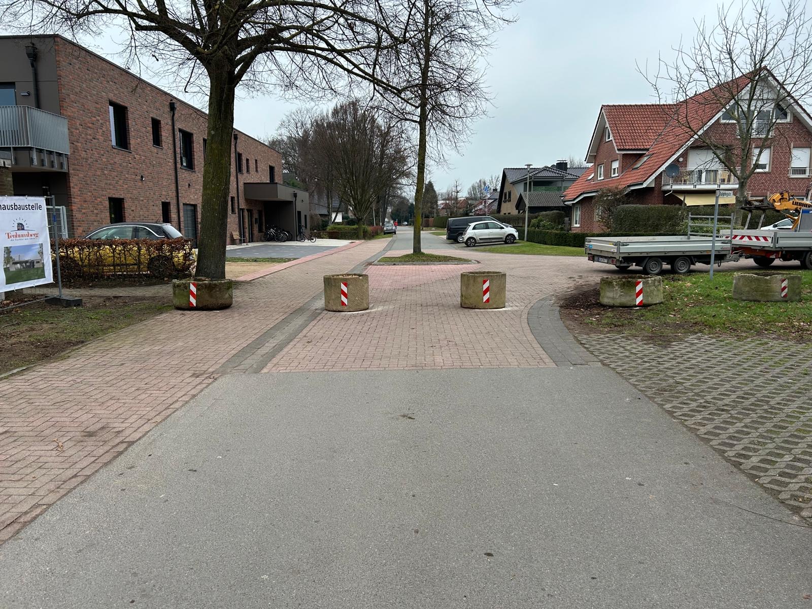 Um den Bau- und Lieferverkehr über die Overbergstraße zu ermöglichen, wurden die damals aufgestellten Blumenkübel als Sperre entfernt. Da der Kindergarten inzwischen weitestgehend fertiggestellt ist, können diese nun wieder platziert werden und damit kehrt die Stadt Vreden zur ursprünglichen Verkehrsführung zurück, die Ende 2024 aufgehoben wurde.