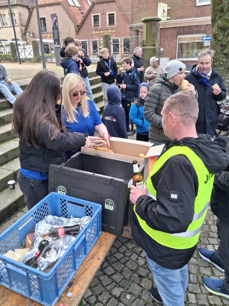 Sonntagmorgen, 7.21 Uhr. Während viele noch im Bett lagen, standen wir schon gestriegelt mit Kaffee und frischen Brötchen am Vereinsheim. Kalt war’s, aber trocken. Und das reicht, wenn man ein klares Ziel vor Augen hat: Gemeinsam nach Hiltrup, unsere Erste unterstützen und die letzten Punkte für den Klassenerhalt holen.