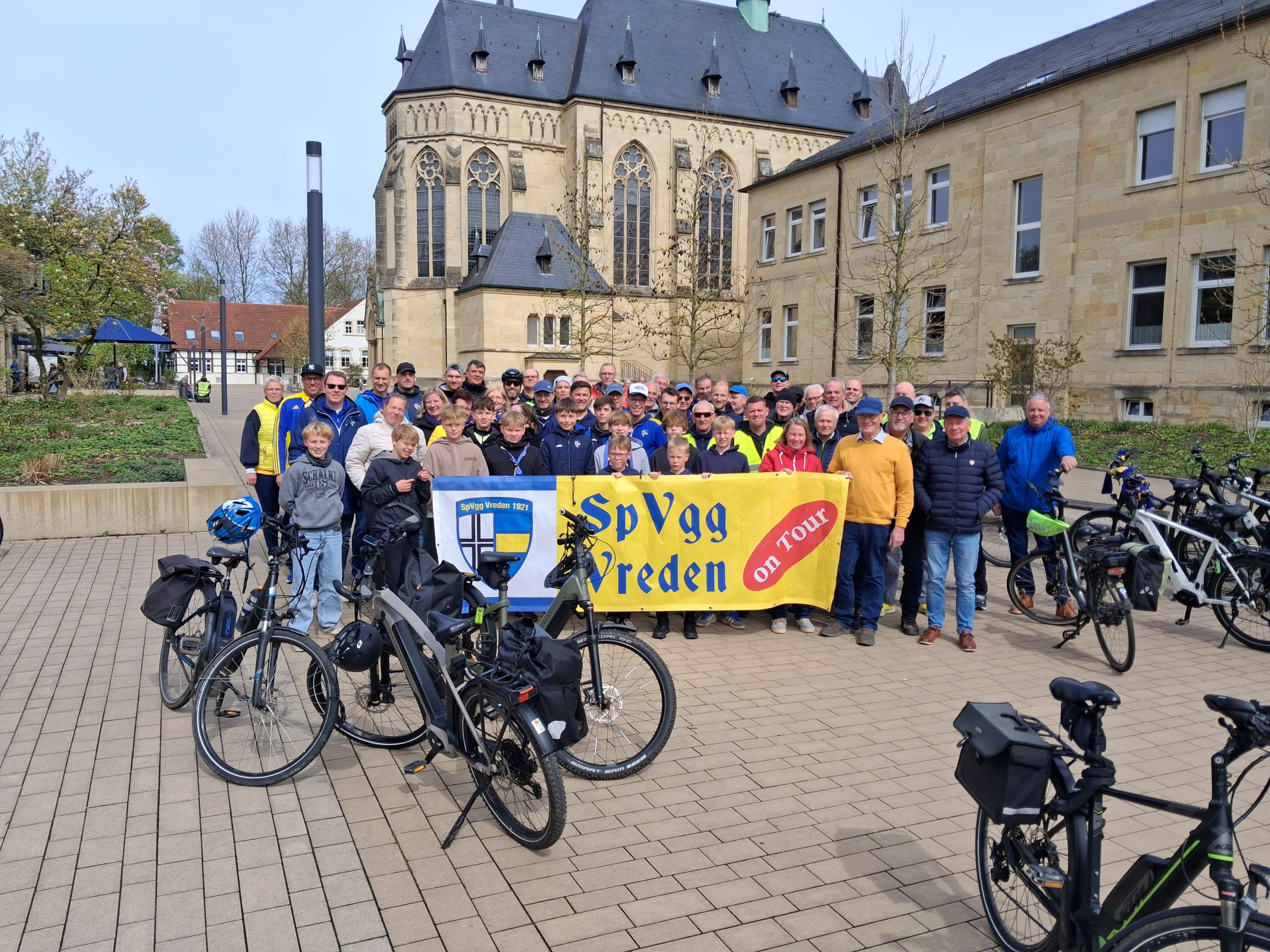 Mit 58 motivierten Fans ging es los, eine bunt gemischte Truppe von 12 bis 80 Jahren. Vom modernen E-Bike bis zum ollen Drahtesel war alles dabei. Die Grundlage dafür legten unter anderem unsere Ladies, die uns mit viel Einsatz und Liebe bestens verpflegt haben – ein großes Dankeschön dafür!