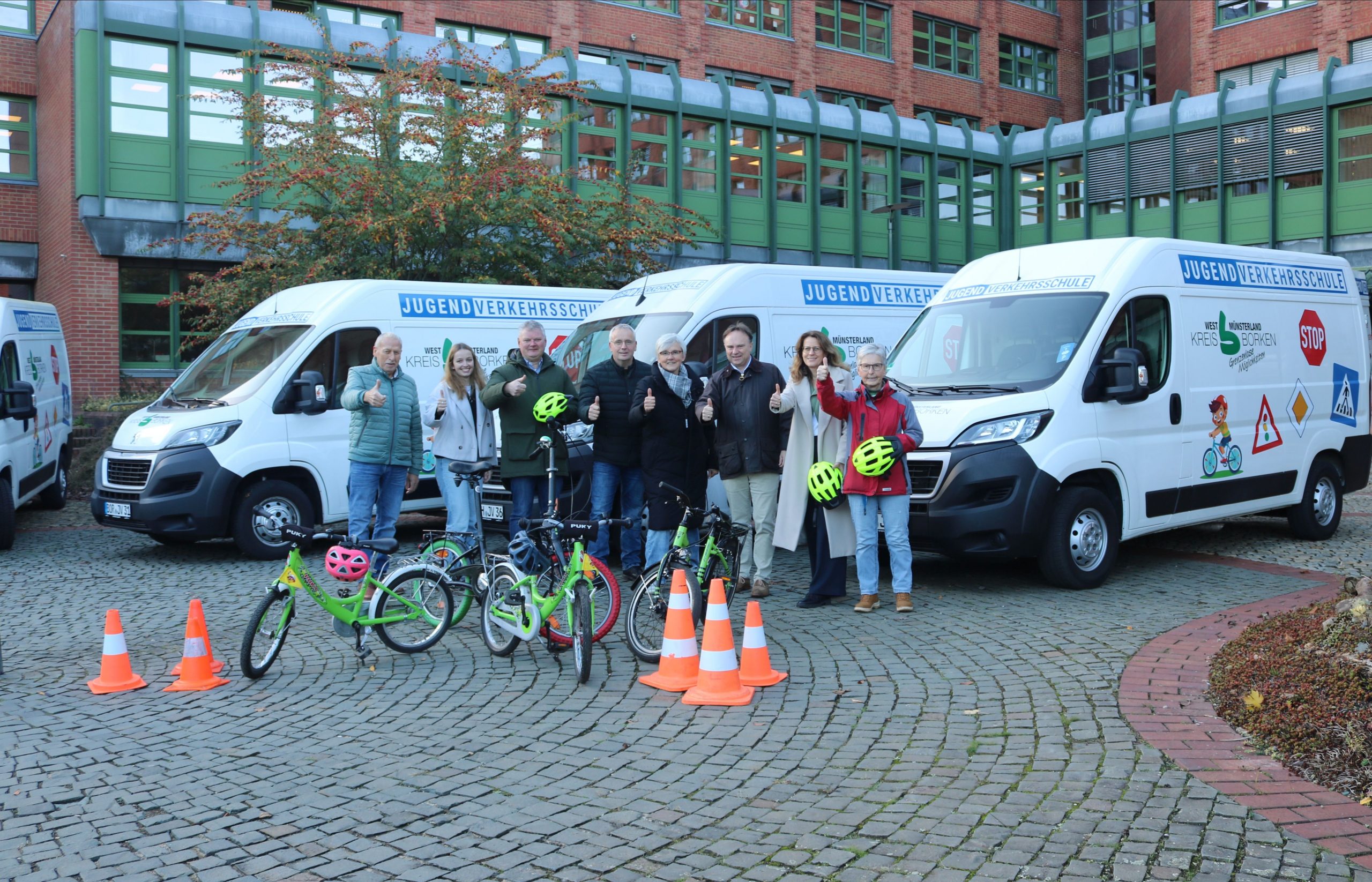 Die Jugendverkehrsschulen (JVS) betreuen Heiner Uebbing (JVS Borken), Franz Ewering (JVS Gronau), Dorothea Bißlich (JVS Bocholt) und Reinhild Mußholt (JVS Stadtlohn). Die Grundschulen im Kreisgebiet werden bereits seit den 1960-Jahren von vier mobilen Jugendverkehrsschulen betreut. An den Schulen trainieren die Betreuer mit den Kindern das richtige Verhalten im Straßenverkehr und sicheres Fahrradfahren: So werden etwa die Verkehrsregeln thematisiert und bei einem Fahrradparcours verschiedene Situationen geübt.